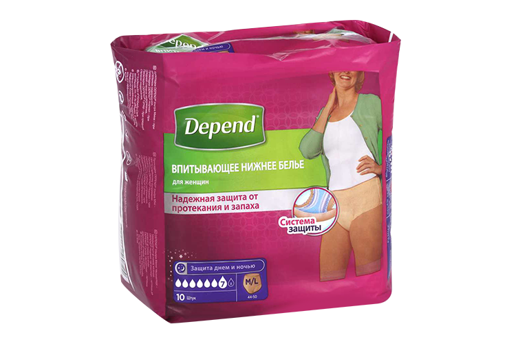 Подгузники-трусы Депенд д/женщин впитывающие М/L x10