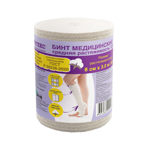 Бинт ИНТЕКС компрессион эласт мед клипсы средней растяж 8 см х3 м x1