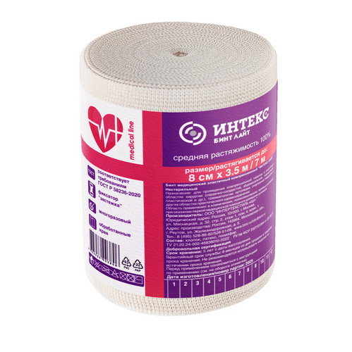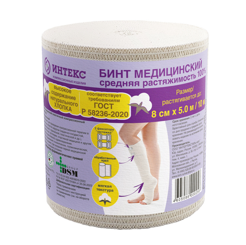 Бинт ИНТЕКС компрессион эласт мед клипсы средней растяж 80мм х5 м x1