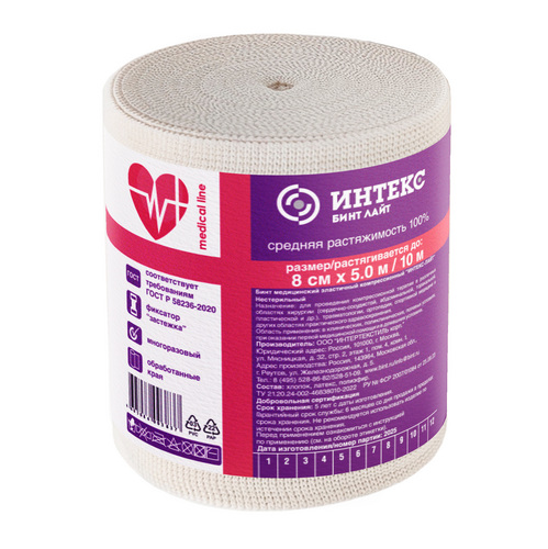 Бинт ИНТЕКС-ЛАЙТ компрессион эласт мед Т клипсы средней растяж 80мм х5 м x1