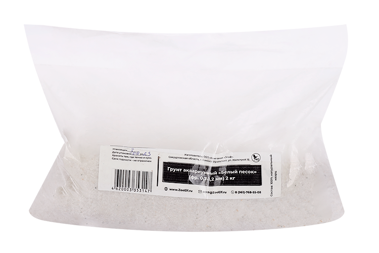 Грунт RIGERHAUS аквариумный белый песок фракция 0,7-1,2 мм пакет 2 кг x1