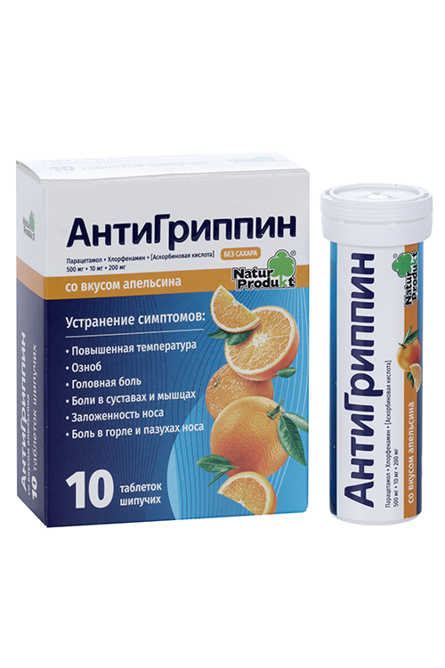 Антигриппин табл шип д/дет 250 мг+3 мг+50 мг x10