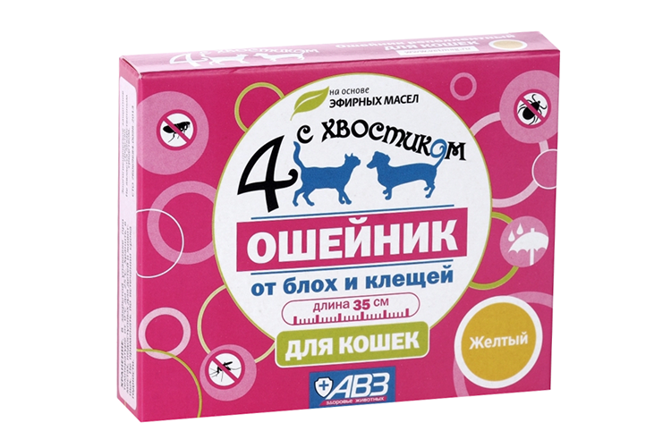 Ошейник Четыре с хвостиком репеллентный д/кошек 35 см x1 желтый