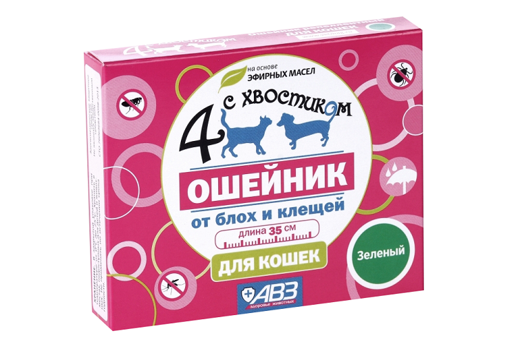 Ошейник Четыре с хвостиком репеллентный д/кошек 35 см x1 зеленый