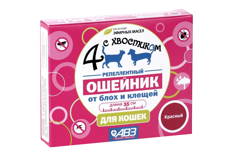 Ошейник Четыре с хвостиком репеллентный д/кошек 35 см x1 красный