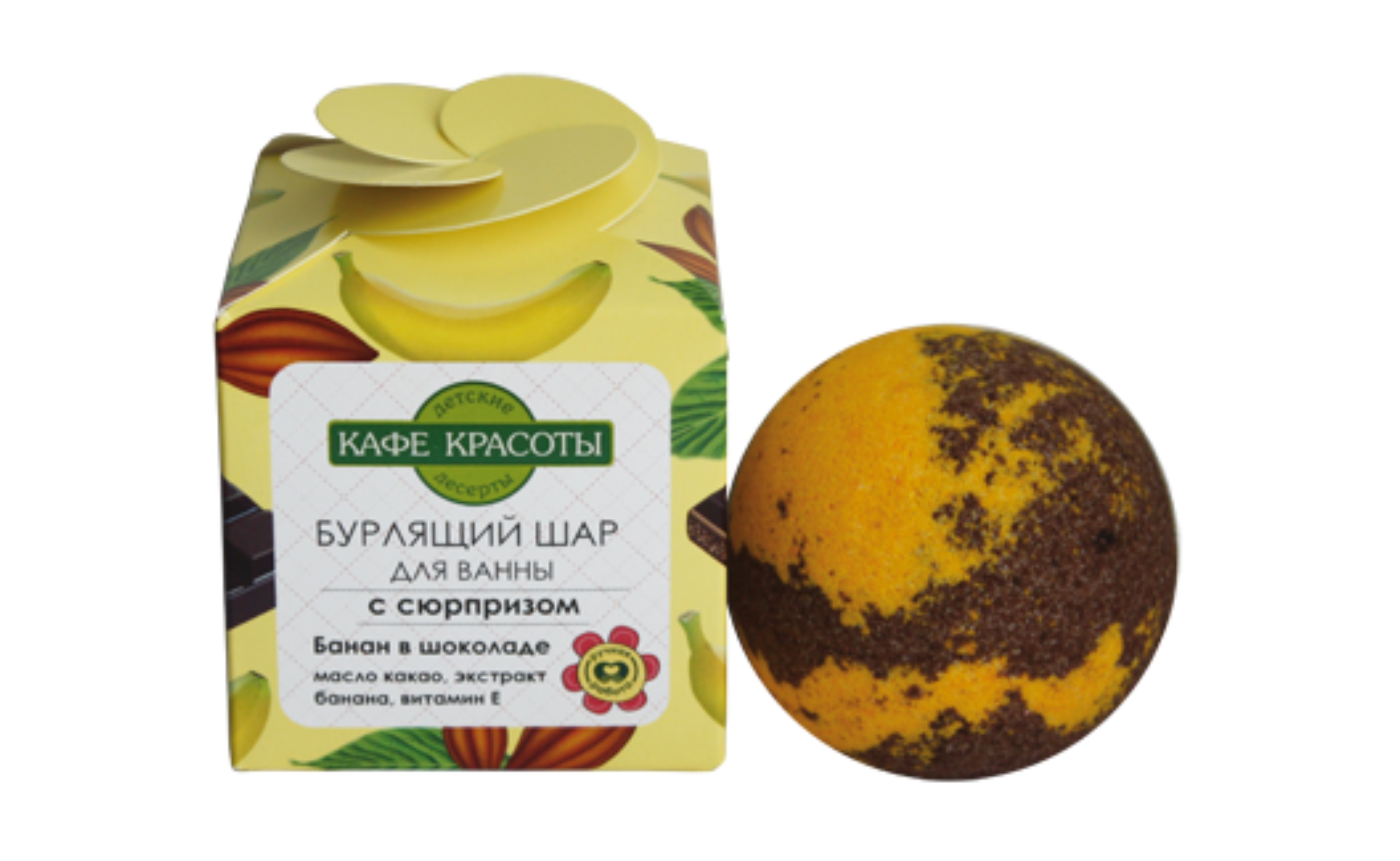 Бурлящий шарик Кафе Красоты детский с сюрпризом банан в шоколаде x1