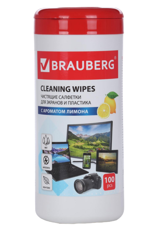 Чистящие салфетки Brauberg для экранов и пластика с ароматом лимона x100