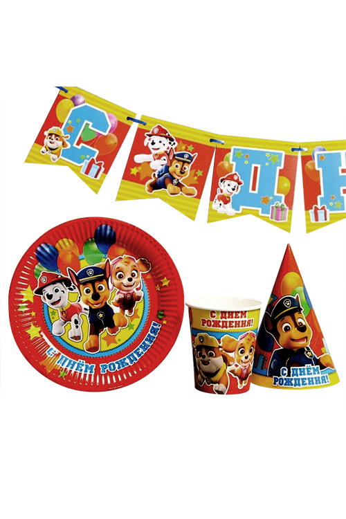 Бумажная посуда Paw Patrol «С Днем Рождения!», набор на 6 персон красный/желтый x1