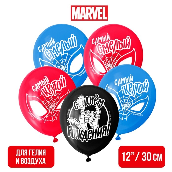 Воздушные шары MARVEL С Днем Рождения! Самый крутой , Человек-паук (набор 5 шт) 12 дюйм x1