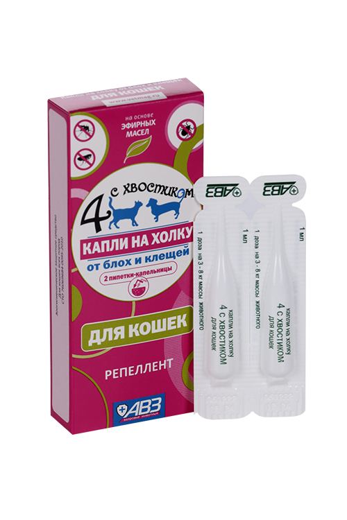 Капли Четыре с хвостиком реппелентные от блох и клещей на основе эфирных масел д/кошек 2 дозы x1
