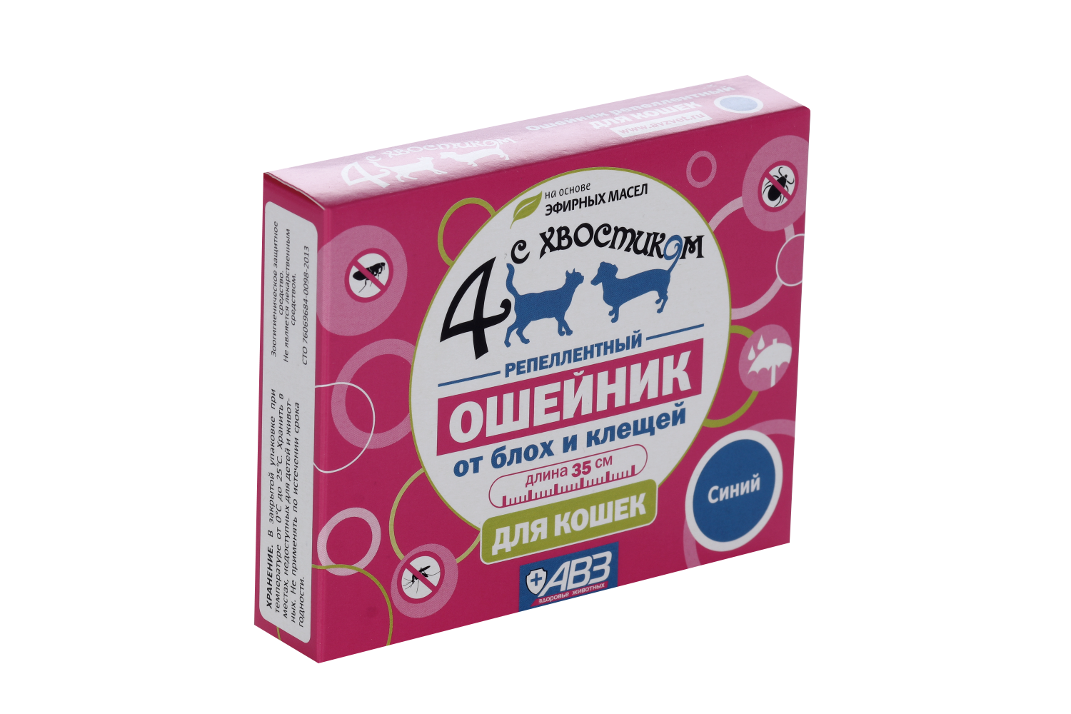 Ошейник Четыре с хвостиком репеллентный д/кошек 35 см x1 синий