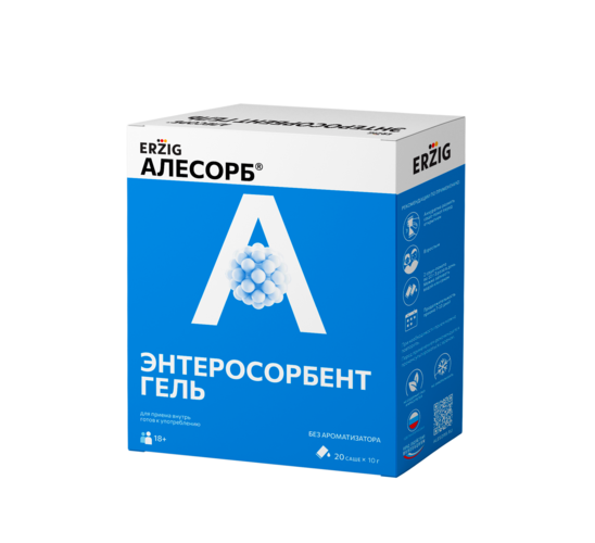 Алесорб Энтеросорбент гель ЭРЦИГ гель д/приема внутрь б/ароматизатора 10 г x20