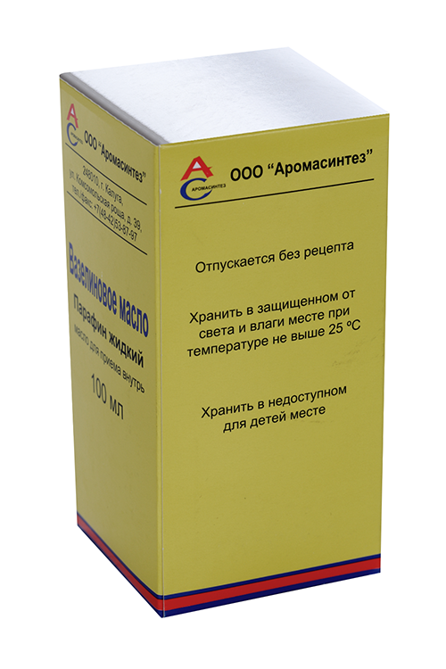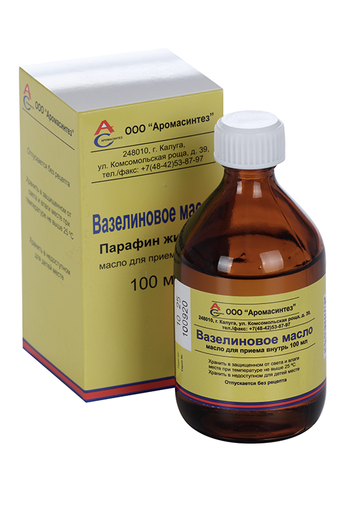 | Вазелиновое масло | Масло д/приема внутрь: фл. 25 мл, 30 мл, 40 мл, 50 мл или 100 мл рег. №: ЛП-004393 от 01.08.17 - Действующее |