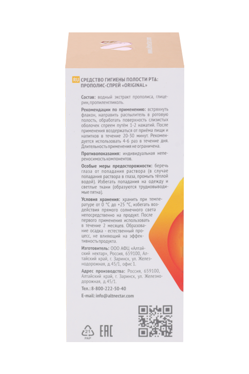 Состав: вода деминерализованная, густой экстракт прополиса, пропиленгликоль, глиценин