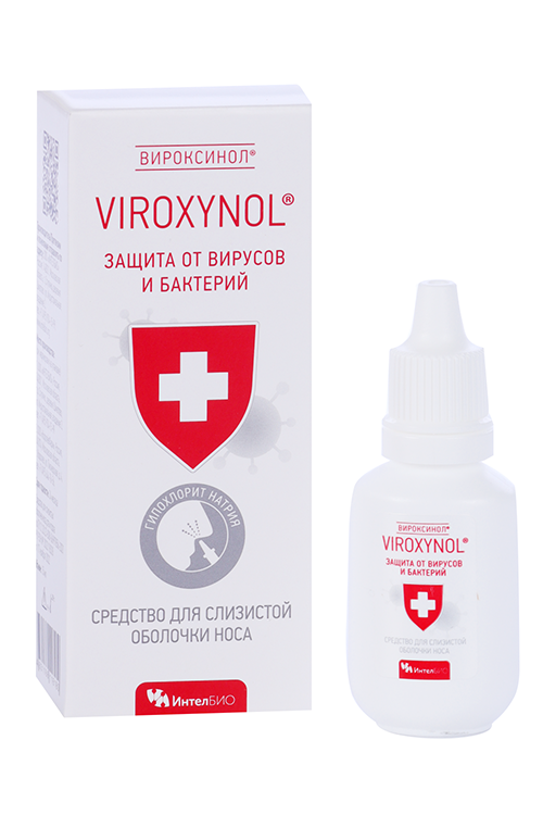 Сведения об основных потребительских свойствах (краткое описание товара): ВИРОКСИНОЛ, спрей-гель для носа – это средство для очищения и защиты носа от вирусов, бактерий и грибов, в том числе до и после посещения общественных мест и контакта с заболевшими инфекционными заболеваниями. Одним из путей передачи респираторных инфекций, в том числе COVID-19, является воздушно-капельный путь: вирусы и бактерии выделяются с каплями слюны, слизи или мокроты при дыхании, разговоре, кашле, чихании инфицированного человека, рассеиваются на расстоянии 1-1.5 метра и могут попасть на слизистую оболочку носа любого человека. ВИРОКСИНОЛ, спрей-гель для носа создан для очищения и защиты носа от вирусов, бактерий и грибов. Активным компонентом серии ВИРОКСИНОЛ является гипохлорит натрия (<,0,08%), полученный электрохимическим путем и обладающий противовирусным, антибактериальным и противогрибковым действиями. Согласно рекомендациям ВОЗ гипохлорит натрия рекомендован для антимикробной обработки поверхностей, в том числе для уничтожения вируса COVID-2019 1,2. При нанесении гипохлорит натрия выделяет активный кислород, который разрушает микроорганизмы. При этом гипохлорит натрия распадается на натуральные компоненты: воду и минеральную соль (натрия хлорид).