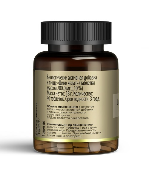 Вспомогательные вещества: микрокристаллическая целлюлоза,  ,цинка бисглицинат, поливинилпирролидон, магниевая соль стеариновой кислоты.