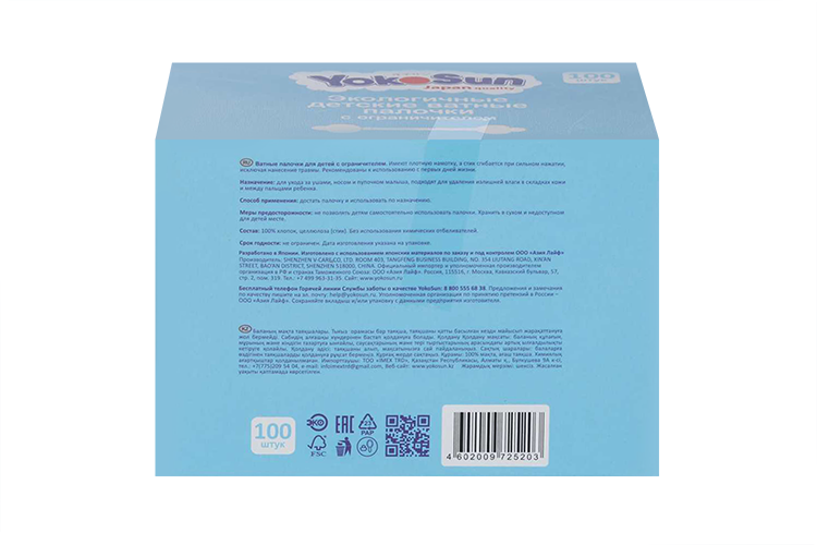 Ватные палочки ЙокоСан экологичные д/детей с ограничителем x100