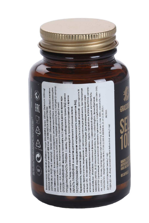 Биологически активная добавка к пище "GRASSBERG Селен 100мкг (Selenium 100mcg)".