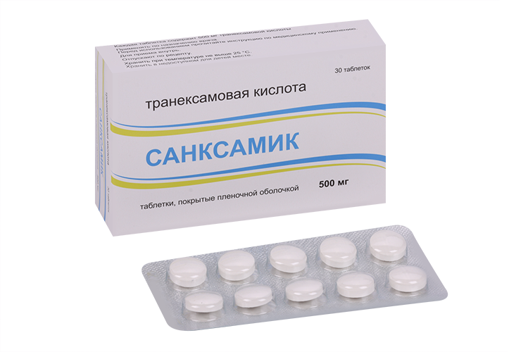 Обладает местным и системным гемостатическим действием при кровотечениях, связанных с повышением фибринолиза (патология тромбоцитов, меноррагии). Также транексамовая кислота за счет подавления образования кининов и других активных пептидов, участвующих в аллергических и воспалительных реакциях, обладает противоаллергическим и противовоспалительным действием.