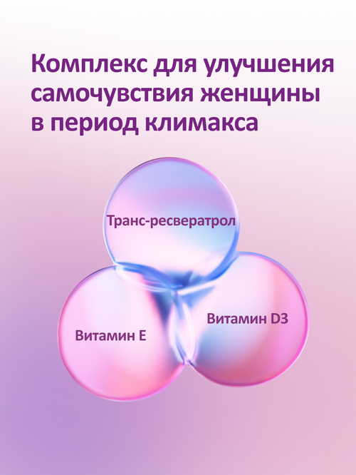 Негормональная поддержка женского здоровья за счет комплекса фитоэстрогена природного происхождения и антиоксидантов.