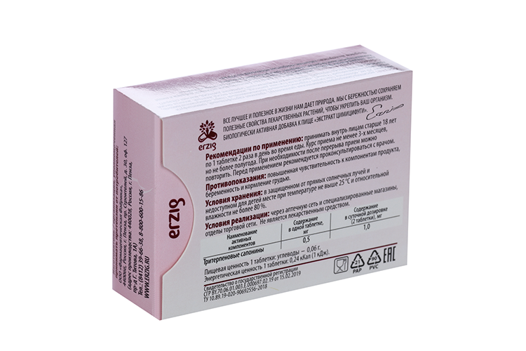 Рекомендуется в качестве биологически активной добавки к пище для , поддержания функционального состояния репродуктивной системы женщин в климактерическом периоде, содержит тритерпеновые сапонины.