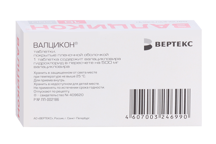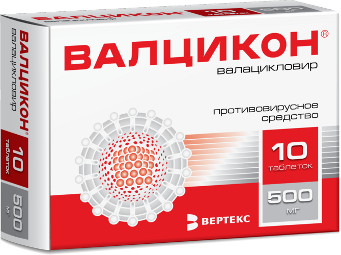 Валацикловир Валцикон табл п о пленочн 500 мг x10