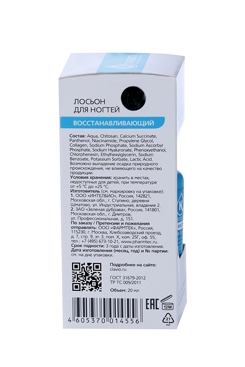 КЛАВИО восстанавливающий, лосьон для ногтей 20 мл | Зеленая Дубрава» ЗАО для «ФАРМТЕК» ООО | Россия | Косметическое средство |