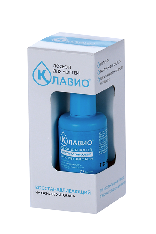 Основой лосьона КЛАВИО является хитозан – биологический полимер, способствующий выравниванию структуры ногтевой пластины и защищающий ее от проникновения внешних агрессивных веществ и потери влаги.