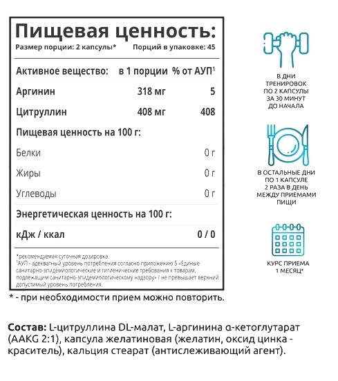 Аргинин способствует росту мышц и уменьшению жировых отложений при адекватной физической нагрузке. Это позволит вам быстрее похудеть и сформировать красивое рельефное тело. , ,