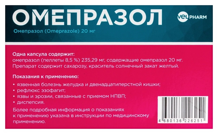 Омепразол ОмеВел капс кишечнораств 20 мг x30 Велфарм