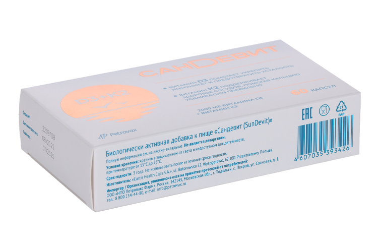 в качестве биологически активной добавки к пище – дополнительного источника витаминов D3, К2.