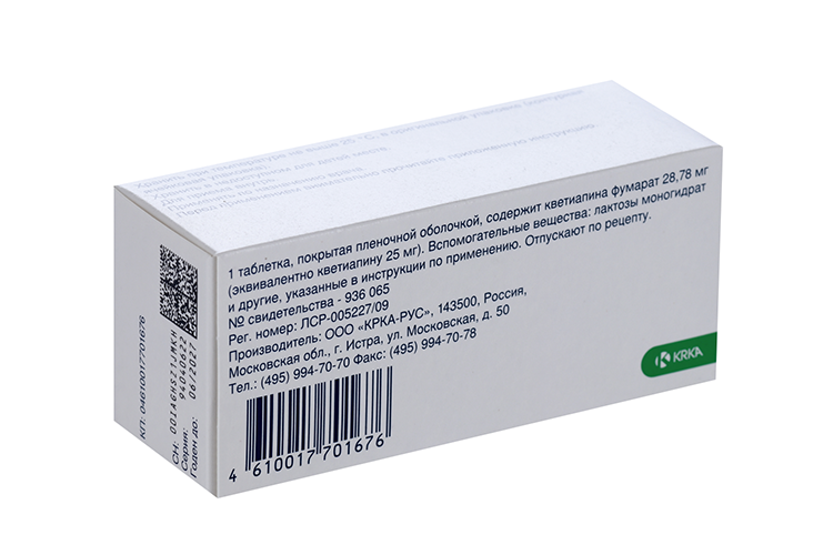 | КВЕНТИАКС® | таб., покр. пленочной оболочкой, 25 мг: 30, 60 или 90 шт. рег. №: ЛСР-005227/09 от 30.06.09 - Бессрочно | |