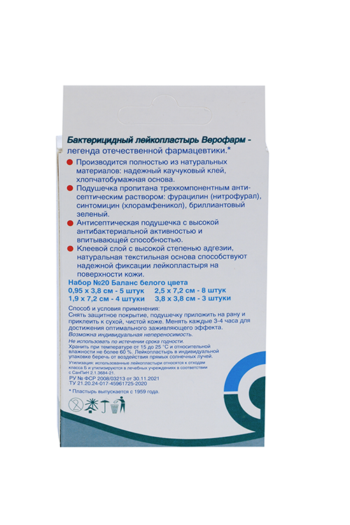 Лейкопластырь Верофарм бактер x20 Баланс ( белая основа)