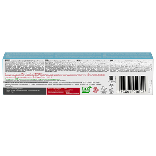 Комплексная зубная паста с биоактивным лактатом кальция и гидроксиапатитом – строительным веществом эмали. Высокое содержание этих компонентов позволяет укрепить эмаль и снизить повышенную чувствительность зубов уже после нескольких дней использования. Сочетание натурального фермента папаина с отбеливающим компонентом Polydon® препятствует образованию налета и зубного камня. Бикарбонат натрия бережно осветляет эмаль, нормализует pН-баланс полости рта и с жирными кислотами омега-3 заботится о здоровье десен. Инновационная система Sp.White System® безопасно отбеливает и полирует эмаль до блеска.