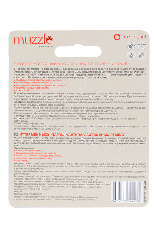 Ошейник Muzzle антипаразитарный отрезной предназначен для питомцев в целях защиты от различных насекомых, паразитов, в том числе блох, вшей, власоедов, клещей, слепней, комаров и др. Использование ошейника на постоянной основе обеспечивает эффективную защиту для пушистика.