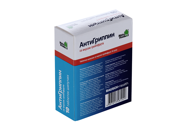 Антигриппин табл шип грейпфрут 500 мг+10 мг+200 мг x10