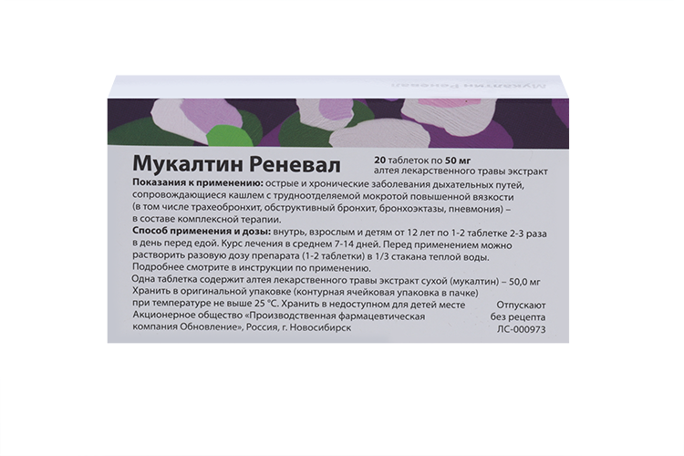 | Мукалтин Реневал | Таб. шипучие 50 мг рег. №: ЛП-(001920)-(РГ-RU) от 13.03.23 - Действующее |