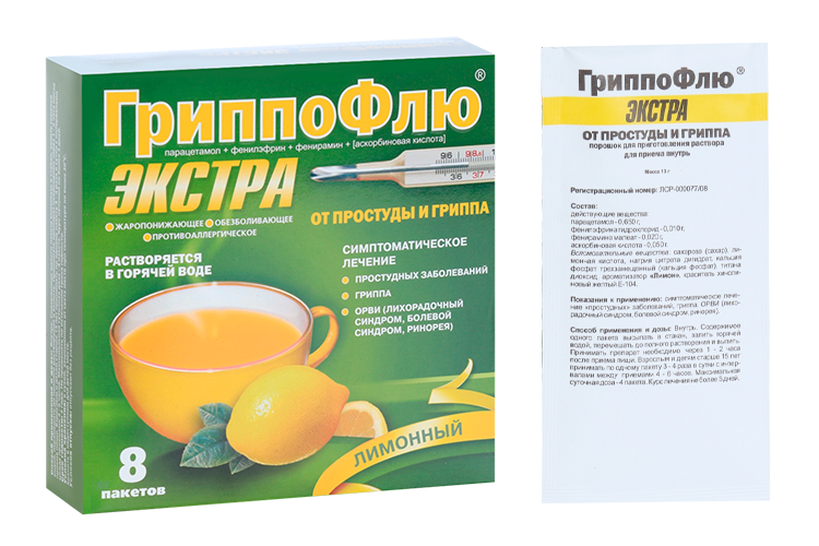 Флюкомп от гриппа и простуды пор д/приг р-ра вн лимон x10